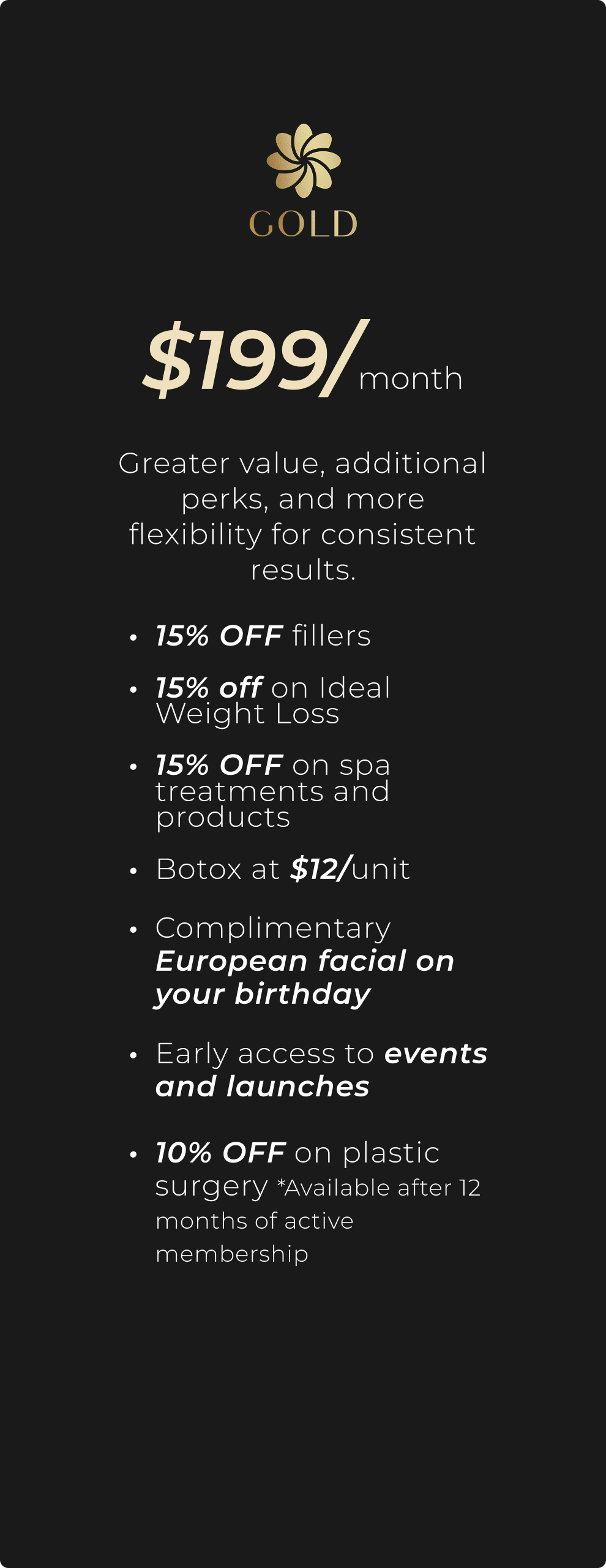The ultimate glow experience with premium discounts and the highest level of benefits