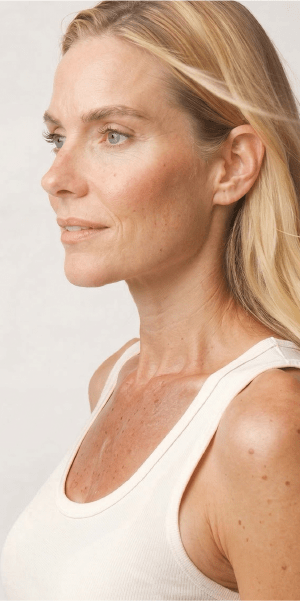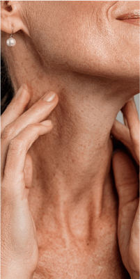 Poor skin quality with signs of aging and sun exposure